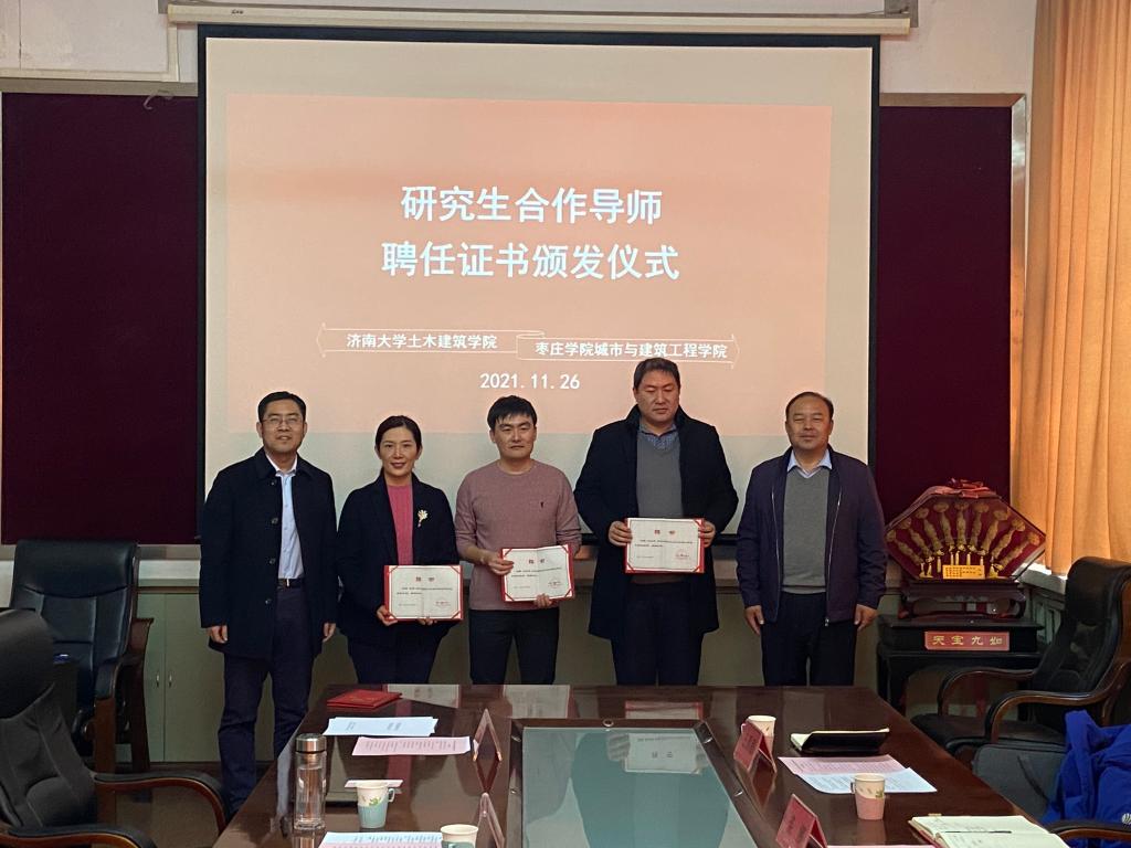 林勇和谢群签署了合作框架协议,栾志强及谢群共同向聘任的兼职硕士研究生导师发放聘书。签约仪式后,全体人员参观了济南大学土木工程综合实验中心。