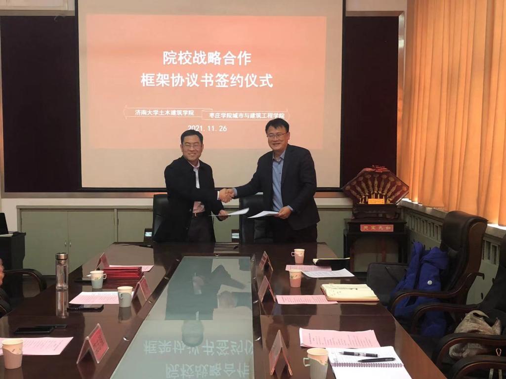 11月26日,枣庄公司党委委员、统战部部长、betway西汉姆联平台经理林勇一行4人赴济南大学土木建筑公司考察学习并签订院校战略合作框架协议。副经理裘娜、经理助理孙启林、给排水专业负责人王昌稳参加了本次签约活动。