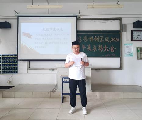 会议最后,由徐海波做总结讲话,他向受表彰的同学表示衷心的祝贺,同时对他们所取得的成绩表示充分的肯定和赞扬,希望受到表彰的同学珍惜荣誉,戒骄戒躁、谦虚进取,再接再厉,取得更大进步和成绩;希望全体同学以获奖同学为榜样,见贤思齐,积极上进,做一个胸怀家国、理想远大的人;做一个勤奋好学、追求进步的人;做一个身心健康、全面发展的人。