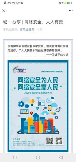 2020年9月14日至9月20日是第七届国家网络安全宣传周。为贯彻落实“国家网络安全宣传周”活动的相关要求,公司开展了为期一周的网络安全宣传活动。