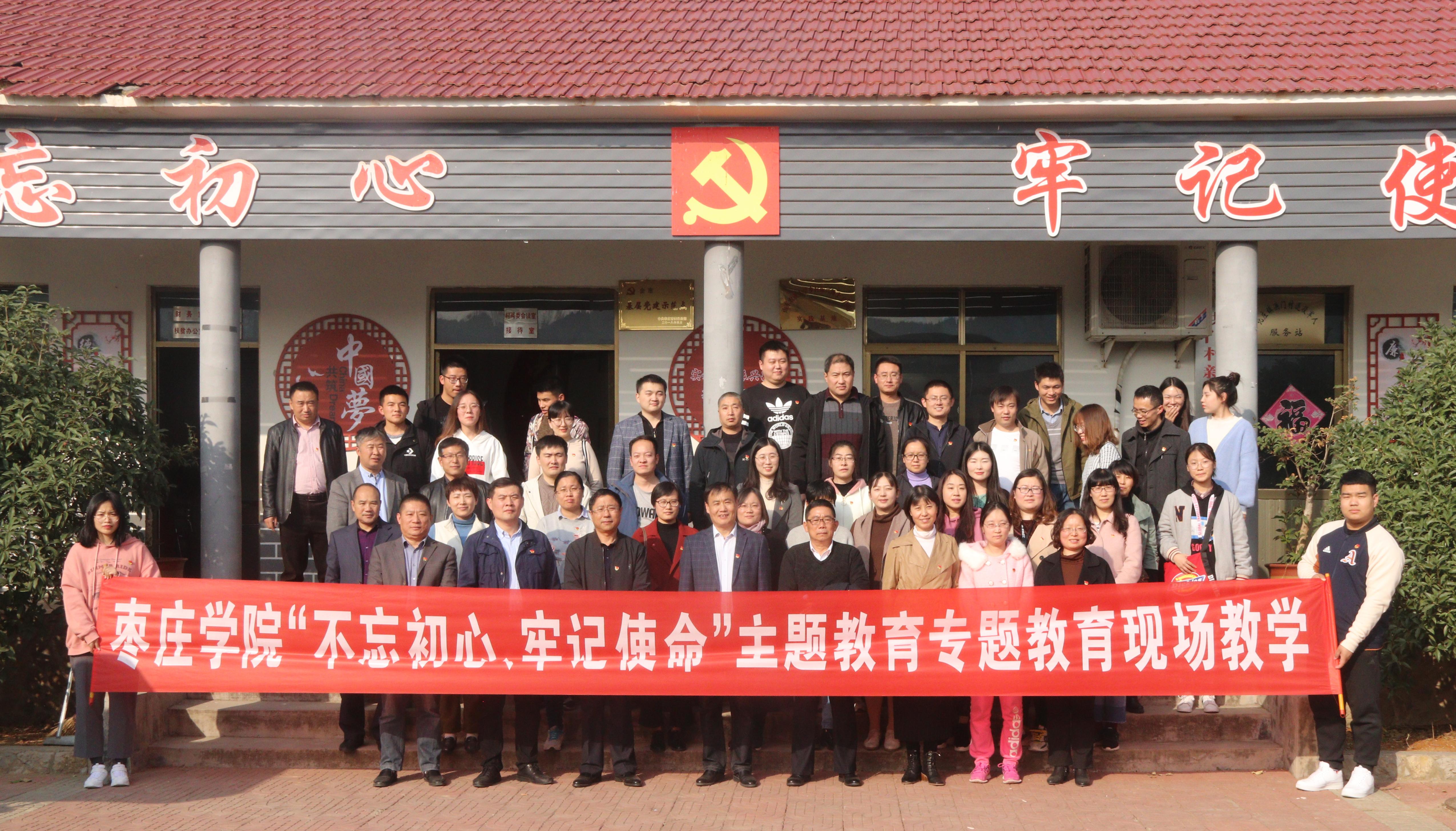 11月12日,betway西汉姆联平台与旅游与资源环境公司组织教工党员和部分师生代表赴山亭区凫城镇王家湾---峄县抗日民主政府旧址开展“不忘初心、牢记使命”主题教育现场教学活动。