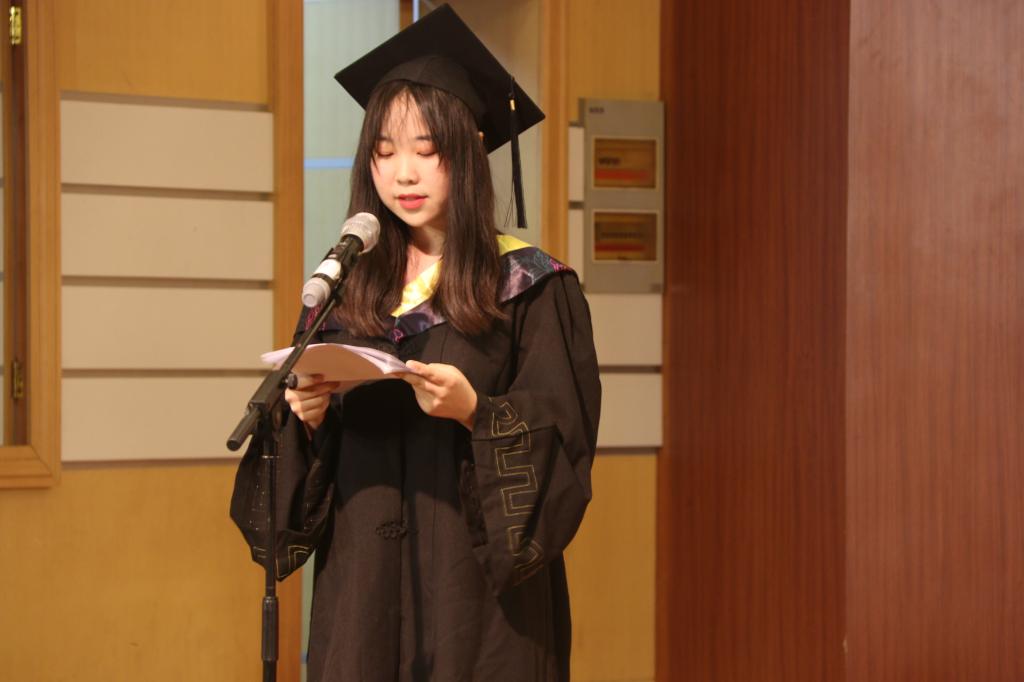 教师代表齐金秋带领大家回忆了同学们在betway西汉姆联平台的点点滴滴,并为即将踏上新征程的2019届本科毕业生送上了真挚的祝福与美好的期待。希望同学们坚守诚信、正直原则,本本分分做人、踏踏实实做事;希望同学们坚持梦想、主动作为;希望同学们独立思考、乐观自信;希望同学们坚持学习、不断提高。