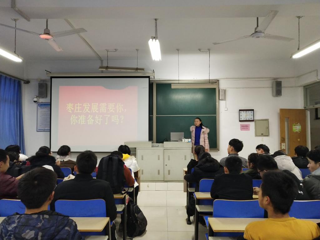 2018年12月5日,各班召开了“枣庄发展需要你,你准备好了吗?”主题团日活动,积极研讨服务枣庄新旧动能转换重大工程工作有关问题,在活动中同学们积极参与、统一筹划、集中学习、一起研讨;通过此次班会的讨论同学们了解了更多枣庄历史、枣庄文化和枣庄经济等,同时也明确了发展目标和“三个意识”。班会在同学们热烈的掌声中落下了帷幕。