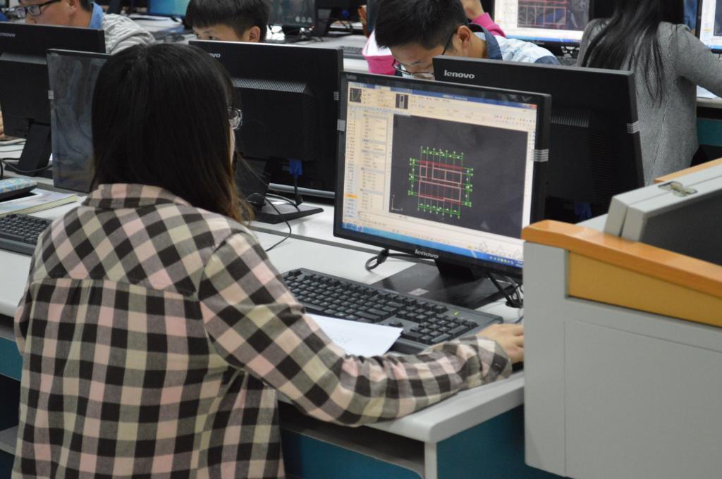 此次大赛经历了预赛和决赛两个阶段。预赛中,经过评委的认真评判,共有40名同学进入了决赛。经过一周系统的培训后,40名同学在墨子楼机房进行了决赛的角逐。决赛共120分钟,要求参赛选手在规定的时间内运用CAD软件,设计出绘图所需要的图层并且绘制完成相应的建筑平面图以及立面图,主要考察员工对CAD软件运用的熟练程度。在决赛的现场,选手们争分夺秒,认真答题。并有条不紊的绘制着自己的作品,努力做到图纸能完全表达结构,选手都高水平、高质量的完成了自己的作品!最后,经过评委评定:13级土木二班的张凤芝获得了第一名,张存波和鞠泽龙分获二、三名。