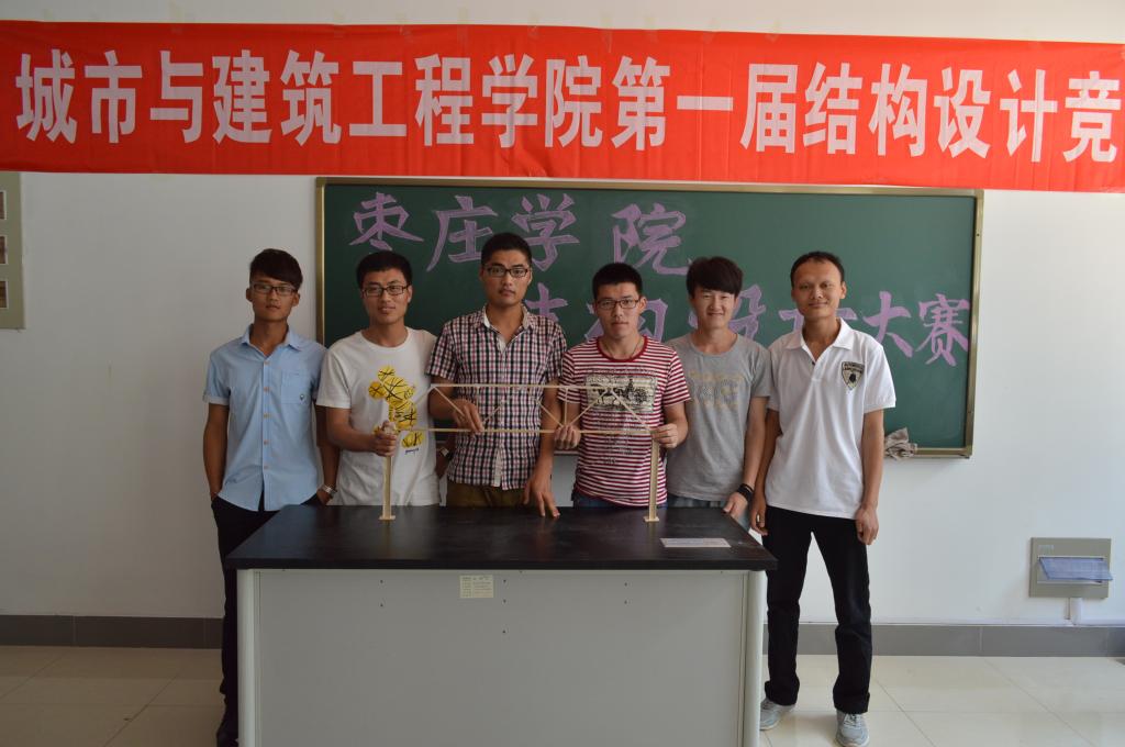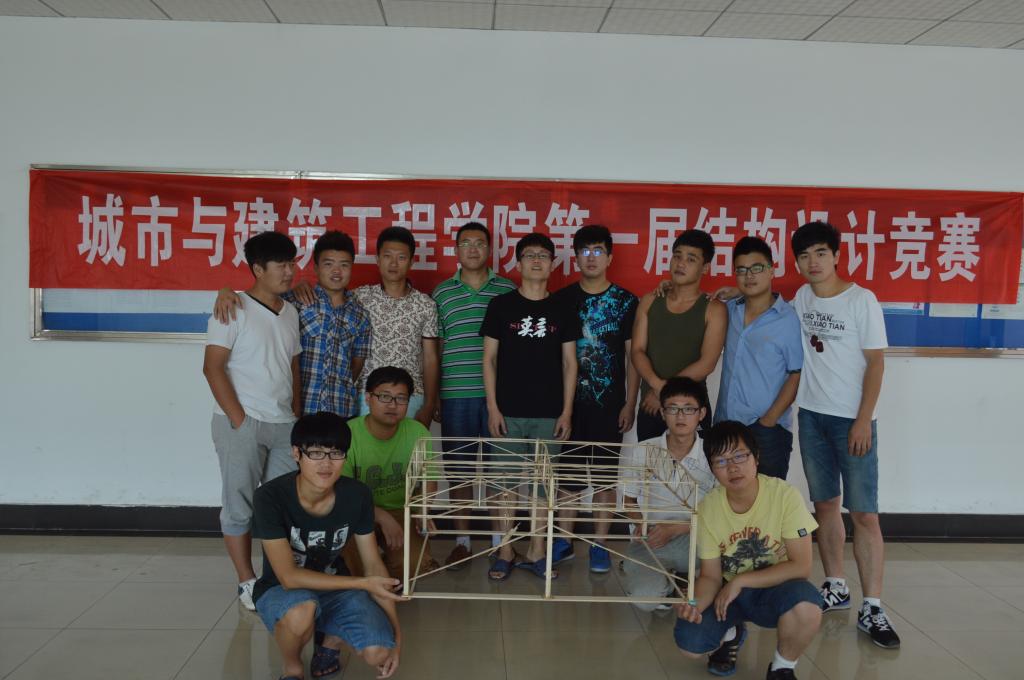 本次大赛于6月1日开幕,比赛要求参赛选手用梧桐木木条和502胶水制作“单层厂房的一榀框架结构模型”。评委根据结构造型与体系、理论分析、模型制作、叙述答辩和加载试验等方面,对参赛模型进行评分,其中承载能力是衡量模型好坏的最重要的指标。在最终的模型加载比赛中,同学们小心翼翼地进行着加载,每一步操作都慎之又慎。5千克有效、10千克有效、15千克有效。随着评委老师一次又一次宣布加载成绩,掌声一次次响起,评委、同学、现场所有的人都拭目以待,直至模型承量达到极点。最终,张武等6名同学设计的作品获得一等奖。赛后,评委老师从结构的安全性、经济性以及低碳环保层面对参赛作品进行了点评。