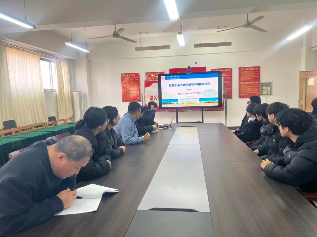 公司青年教师于晓伟博士作了题为《软岩水-岩作用机制与本构模型研究》的学术报告。报告围绕水-岩相互作用下软岩的宏细观响应与理论建模展开,系统介绍了其在软岩裂隙演化规律、力学特性损伤机理等方面的研究成果。结合我国南方湿热地区软岩边坡工程实践,深入解析了水-岩循环效应下软岩的损伤机制,并构建了相应的损伤本构模型。该研究为湿热环境下软岩边坡工程的设计、处治与长期性能预测提供了重要的理论依据与模型工具。