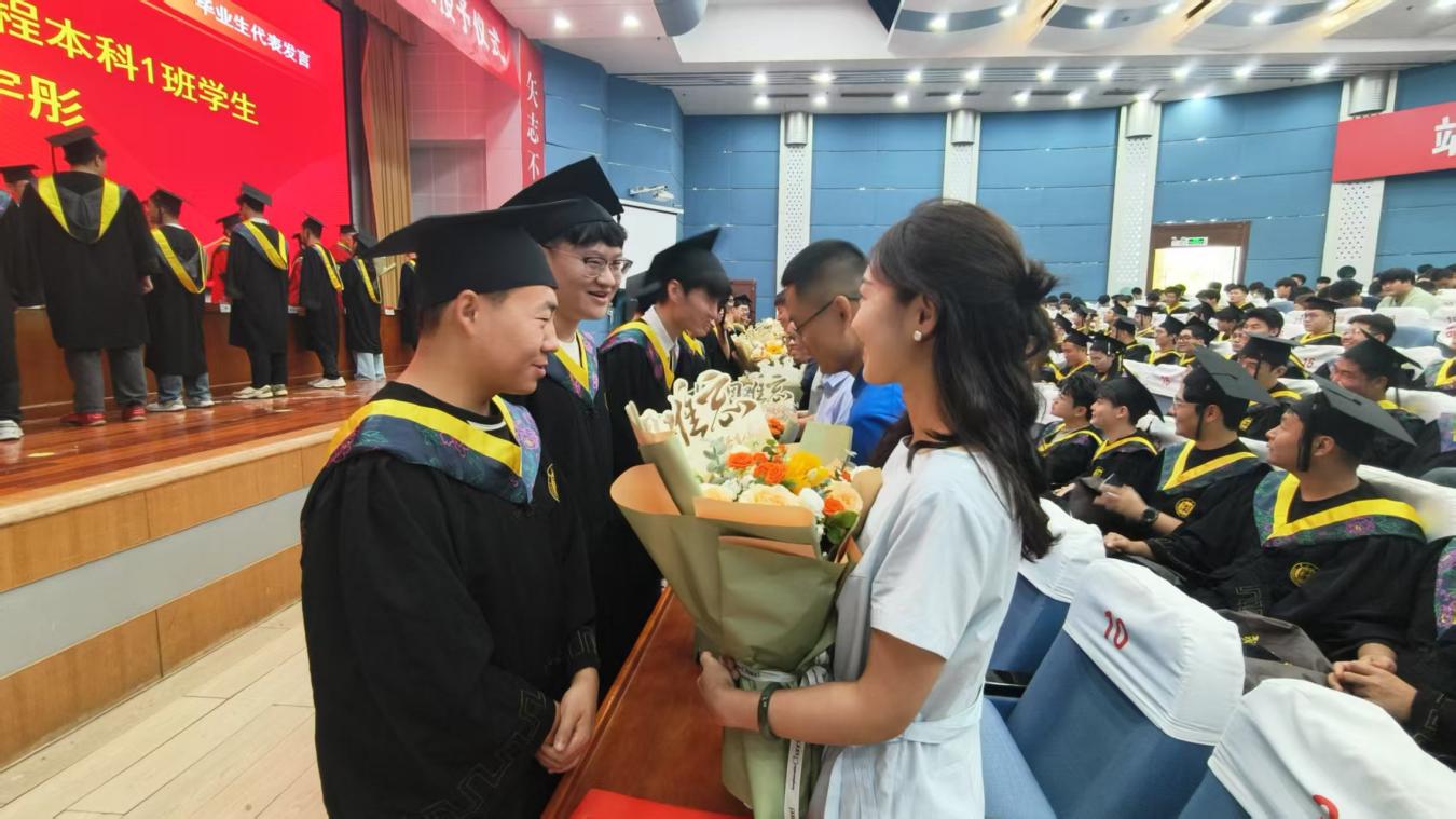 最后,毕业生代表为老师们献上了一束束饱含深情和敬意的鲜花,对老师们的悉心教导和辛勤付出表示衷心感谢,伴随着《毕业快乐》的悠扬歌声,学位授予仪式圆满落下帷幕。