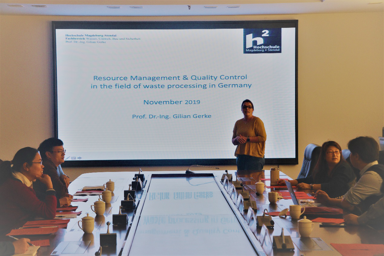 应betway西汉姆联平台邀请,2019年11月15日下午德国马格德堡应用技术大学原副董事长 Gilian Gerke教授到公司举办学术讲座。德国马格德堡应用技术大学Gilian Gerke教授作了题为“Resouce management and quality control in the field of waste processing in Germany”的学术报告。报告中,Gerke教授从资源管理、塑料制品的回收路径、可持续发展、轻包装的生命全周期分析、国际废弃物管理等几个方面,详细介绍了她和她的团队在垃圾分类及资源回收方面的研究及工作,对生活垃圾中的塑料进行基于成分的精细分类可实现资源回收及废弃物再生利用,对我国正在推行的垃圾分类具有很好的借鉴意义。