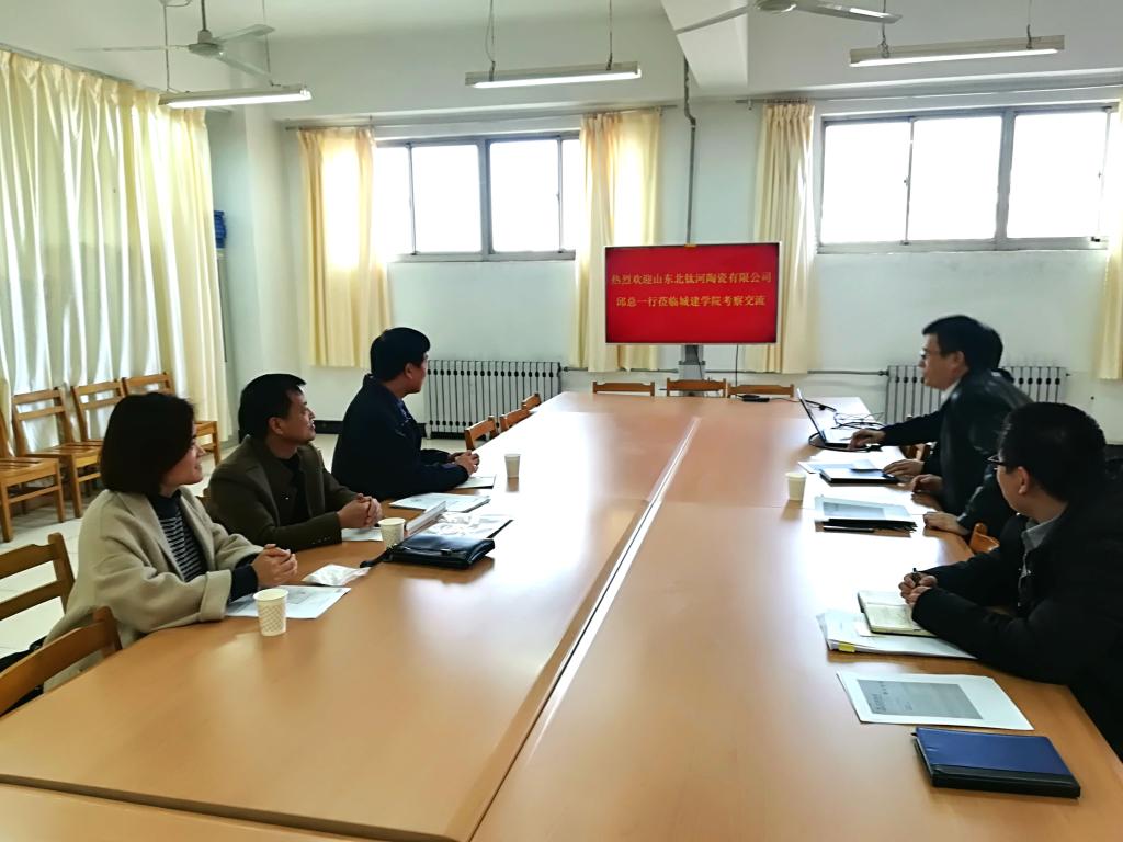 3月4日下午,山东北钛河陶瓷有限公司副总经理邱和厚一行三人莅临betway西汉姆联平台考察交流,betway西汉姆联平台经理王满堂及相关专业负责人参加了座谈,双方就共同关注的资源共享、校企合作等方面进行了深入交流。