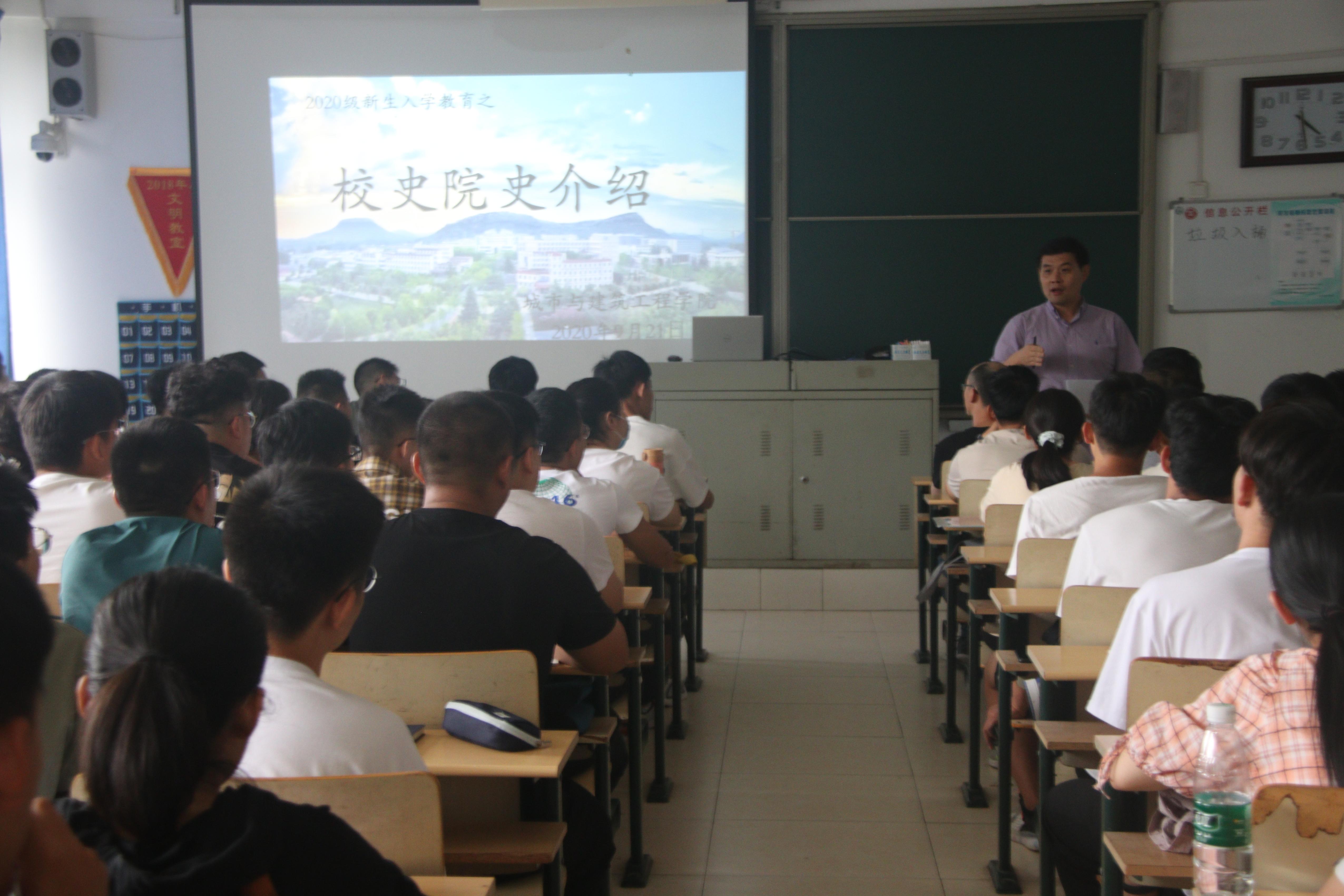 9月21日下午,公司党总支副书记徐海波在理工楼2318教室为2020级新生做了形式与政策报告暨校史院史教育报告。徐书记首先向同学们介绍了枣庄的文化积淀和发展状况,感悟以台儿庄文化为代表的枣庄新精神;随后他详细介绍了公司发展的光辉历程及betway西汉姆联平台的发展概况,在团队建设、专业建设、团队队伍建设、科技创新和人才培养等方面所取得成就,以及新时代新形势下全体城建人砥砺奋进创一流,建设“betway西汉姆联平台”的美好愿景。