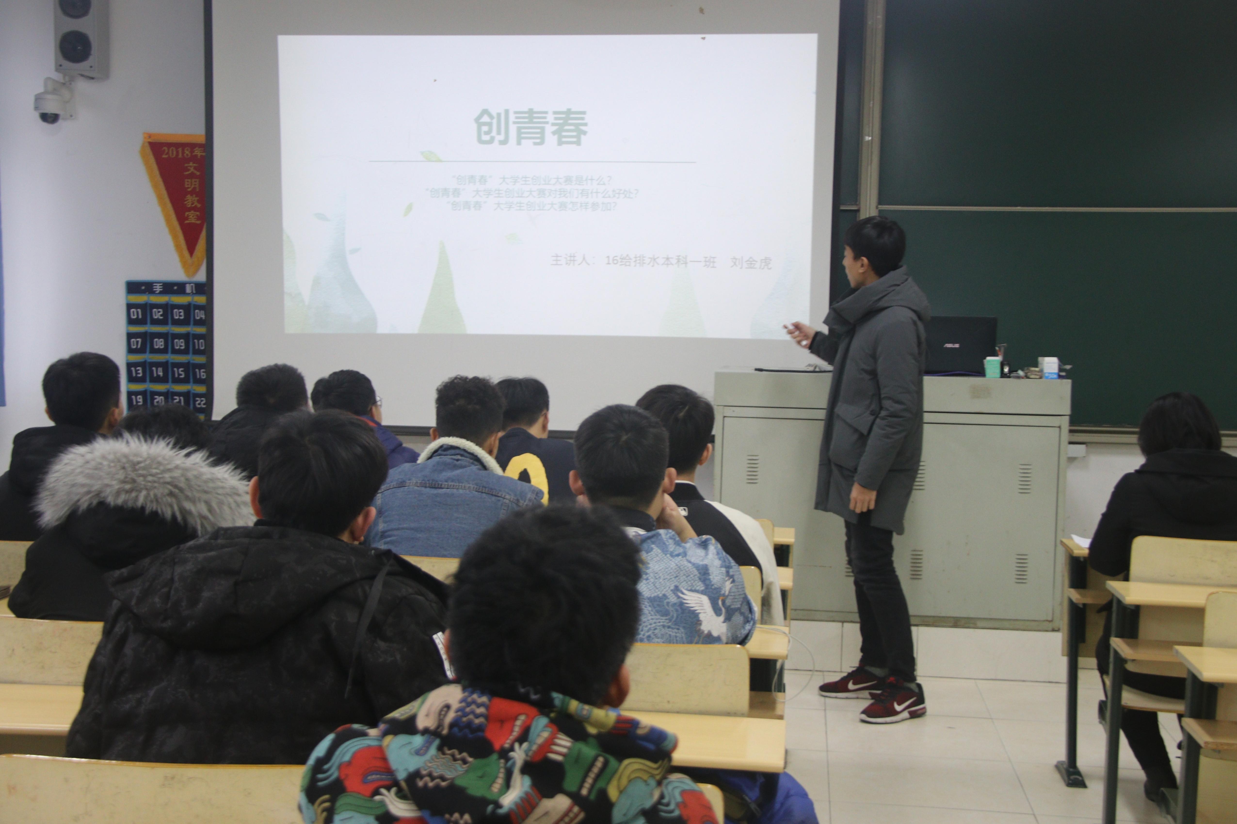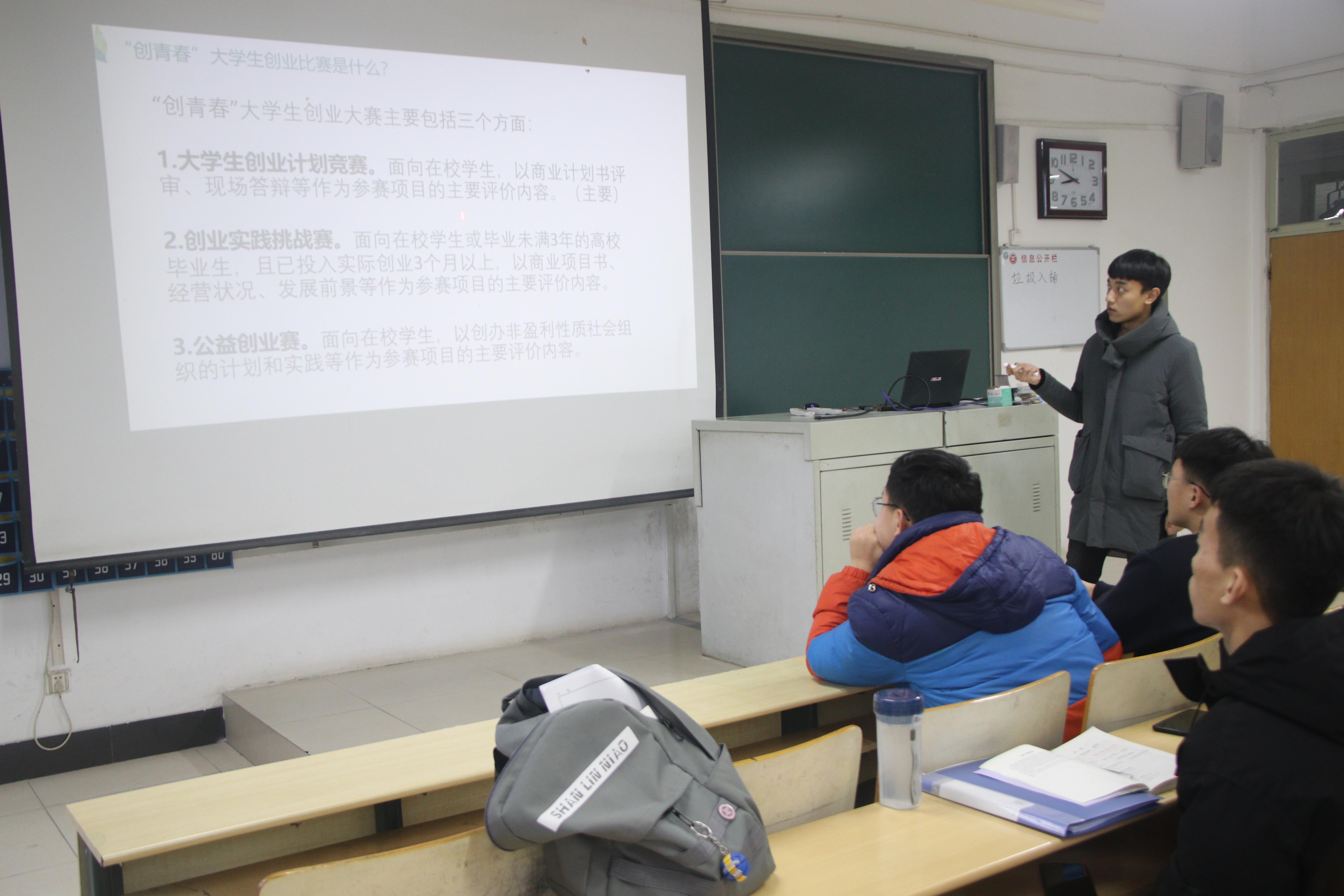 会上刘金虎同学讲述了他自己的创业大赛的历程,分享了个人的经验与启示。之后杜书记也指出希望各班班委踊跃报名参加公司的创业大赛活动,并起到模范带头作用,带动班级的更多同学进入这项活动当中。