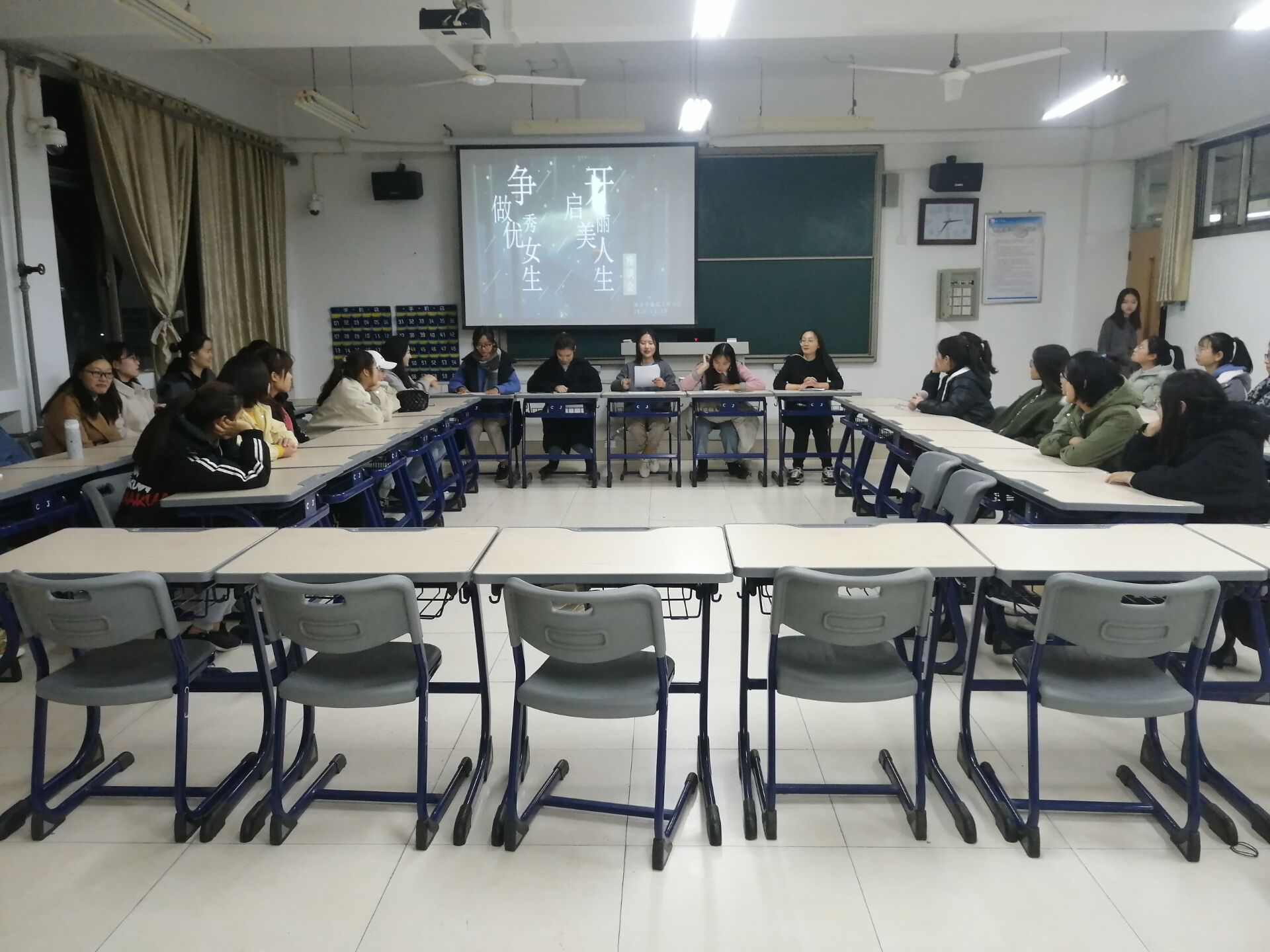 为进一步做好公司女生的日常教育和管理工作,使女生健康成长、励志成才,2019年11月29日晚,betway西汉姆联平台在理工楼2519召开了以“争做优秀女生,开启美丽人生”为主题的女生座谈会。参加此次座谈会的有女工部部长、副部长及19级全体女生。
