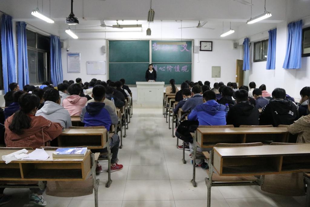 首先,各班团支书从“价值”入手,启发同学们思考社会主义核心价值观的内涵,并引导全体同学从国家、社会和公民个人层面讨论价值目标、取向和准则,深入学习其精髓。接着全体同学观看了社会主义核心价值观的纪录影片,学习了社会主义核心价值观的发展历程,了解其在不同历史时期具体内容的变迁,感受时代所赋予自己的特殊使命,并再次学习了“八荣八耻”,理解社会主义核心价值体系在实践生活中的具体体现。随后同学们结合自身的思想、学习等实际情况,通过演讲、朗诵等形式阐释了自己对社会主义核心价值观丰富内涵的理解。最后,同学们围绕爱国、敬业、诚信、友善等话题,畅谈自己的真切感受,现场气氛异常热烈。