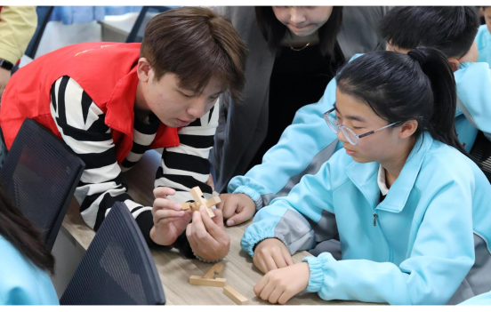 活动现场,志愿者深入浅出地向同学们介绍了鲁班文化的丰富内涵,以大国工匠的事迹号召同学们在学习生活中弘扬工匠精神。宣讲结束后,志愿者向同学们讲解了六通鲁班锁构造原理,分组指导如何拆装,最后组织同学们进行了竞速解构大比拼。同学们热情高涨地参与比赛,仅考验了同学们的耐心和逻辑思维,更让他们深刻感受到鲁班锁所蕴含的智慧。