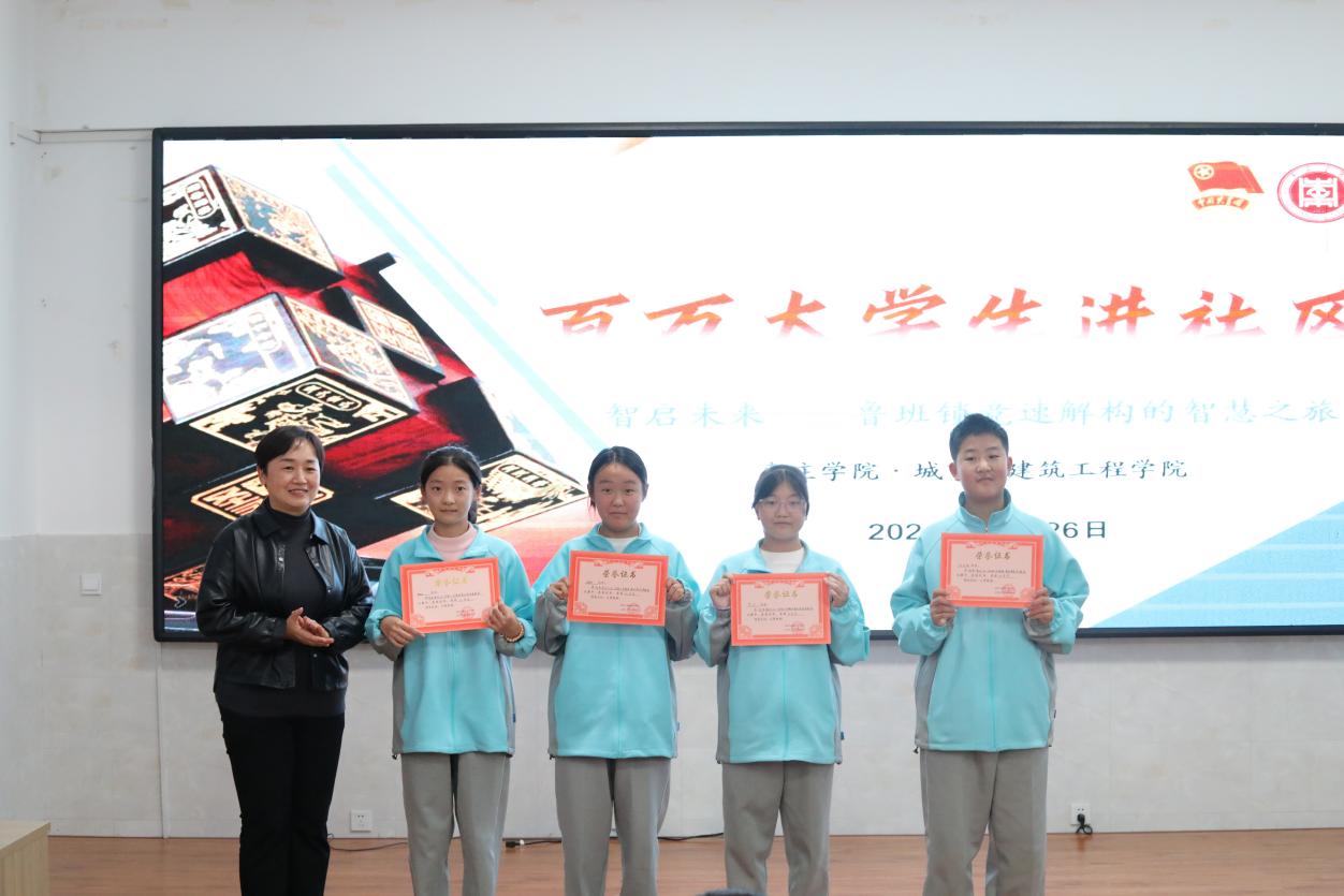 10月26日,betway西汉姆联平台走进枣庄市第十五中学北校,开展“传承鲁班文化 致敬工匠精神”宣讲暨鲁班锁竞速解构活动。公司团委书记裴娴哲、中心街街道团工委副书记陈淑婷、新风里回族社区党总支书记石鑫、枣庄市第十五中学北校七年级级部副主任魏猛出席活动,活动由十五中北校教师刘真真主持,师生及家长共100余人参加。