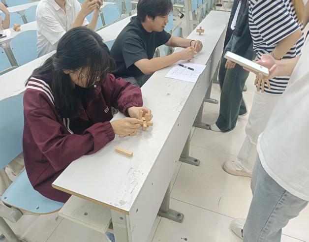 经过初赛选拔,十余名选手成功晋级决赛。比赛现场,选手们需在规定时间内完成“六子联方”“笼中取宝”“六通”等经典鲁班锁的拆解与组装任务,评委根据完成速度、操作规范及结构理解进行综合评分。随着比赛开始,选手们全神贯注,指尖翻飞,榫卯相扣的清脆声此起彼伏。一横一竖间尽显耐心与巧思,一拆一装中诠释智慧与默契。
