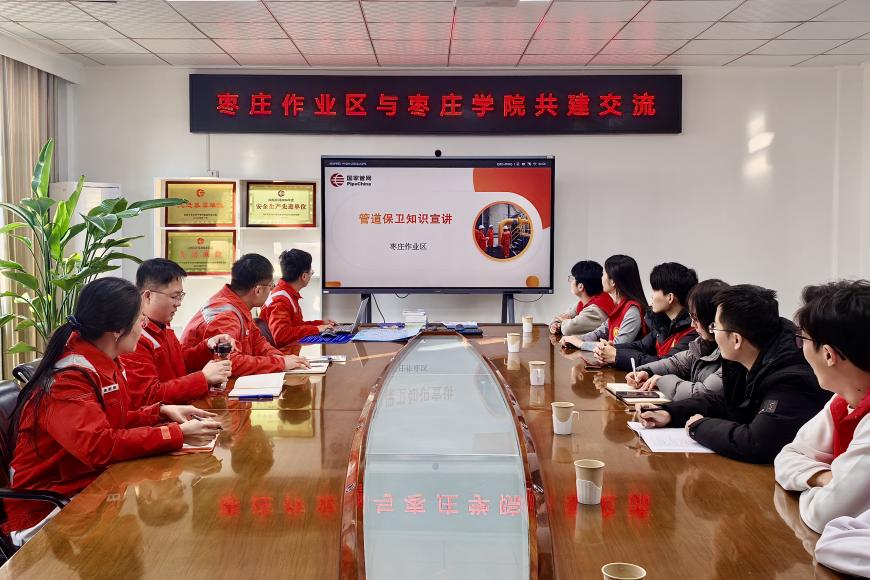 枣庄作业区副经理任军坡对宣讲团的到来表示热烈欢迎,详细介绍了作业区的基本情况、志愿服务工作开展情况及未来合作愿景。宣讲团指导教师裴娴哲对作业区的热情接待表示感谢,并介绍了公司特色志愿服务品牌建设情况及相关育人成果。宣讲团成员则结合志愿服务经验与专业优势,与技术人员展开交流。随后,作业区工作人员围绕当前管道保护面临的形势、法律法规要求、常见风险隐患及应急处置常识等内容进行了志愿者专题培训。期间,宣讲团一行还参观了冀宁线枣庄站站控室,志愿者有了直观而深刻的认识,夯实了宣讲工作的知识基础。