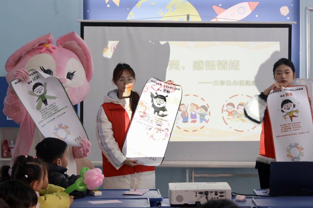 随后,老员工心理健康协会的志愿者为孩子们带来“拥抱心灵·感悟情绪”心理成长主题小课堂。结合生动案例与童趣化语言,志愿者们引导孩子们认识快乐、悲伤、愤怒、害怕等常见情绪,帮助他们理解情绪产生的原因与表现方式,学会做自己情绪的小主人。
