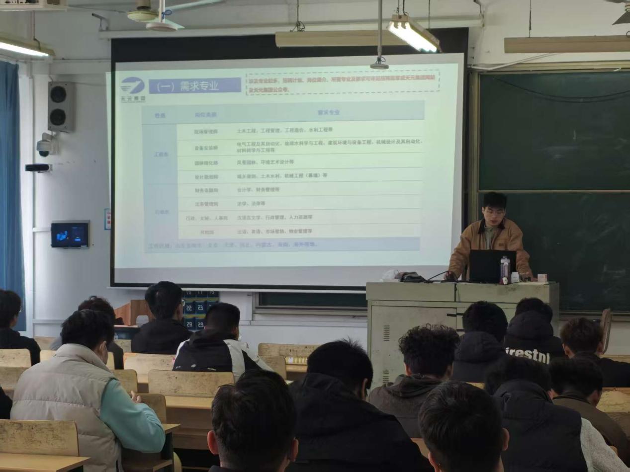 为进一步拓宽毕业生就业渠道,搭建优质校企合作平台,帮助学子精准对接企业,明确职业发展方向,11月1日上午,公司邀请天元集团、山东华铁航实业有限公司在理工楼2318举办专场招聘宣讲会。